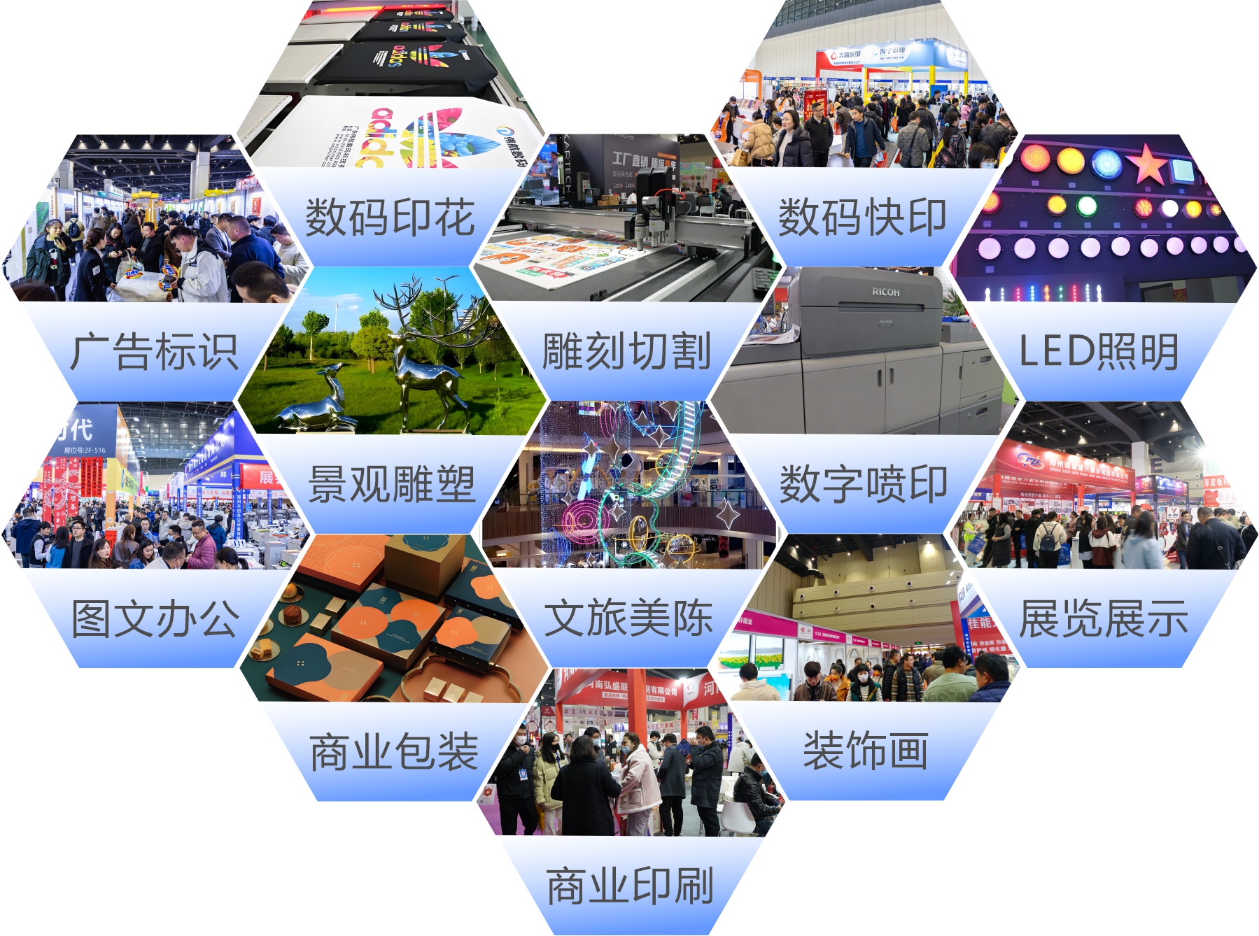 本屆展會重磅匯聚行業(yè)前沿技術(shù)集群與應(yīng)用生態(tài)——從數(shù)字噴印、數(shù)碼印花、雕刻切割到LED照明,從廣告標(biāo)識、展覽展示、景觀雕塑到文旅美陳,從圖文辦公、數(shù)碼快印到商業(yè)印刷與包裝,再到藝術(shù)裝飾畫產(chǎn)業(yè)……多元展區(qū),行業(yè)領(lǐng)軍品牌與精準(zhǔn)買家齊聚,推動商貿(mào)高效配對與新機(jī)融合,打造一站式產(chǎn)業(yè)鏈交流平臺。